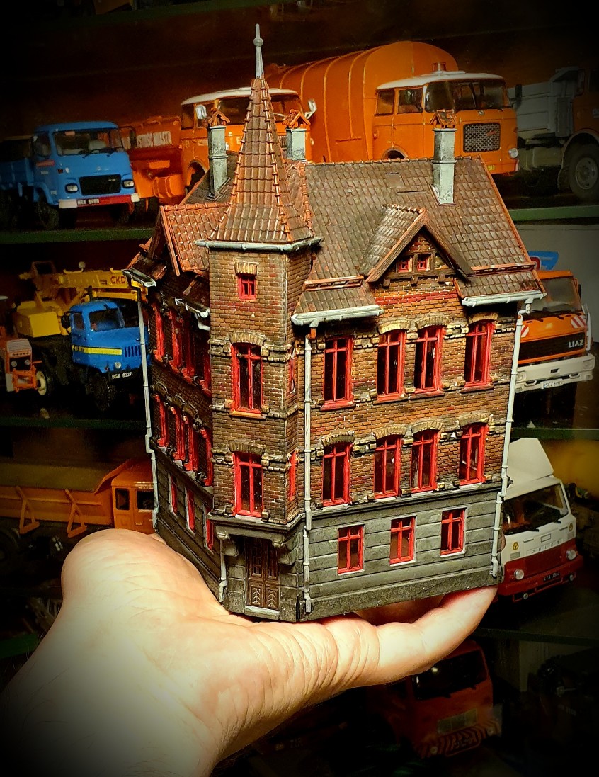 Na zakręty trochę za mało miejsca, długość dioramy to 57 cm. Postawiłem finalnie na bruk bo całkiem ładnie wyszedł i prosto.